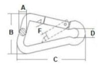 Karabina popruhová nerez 60 mm. Materiál berez A4.