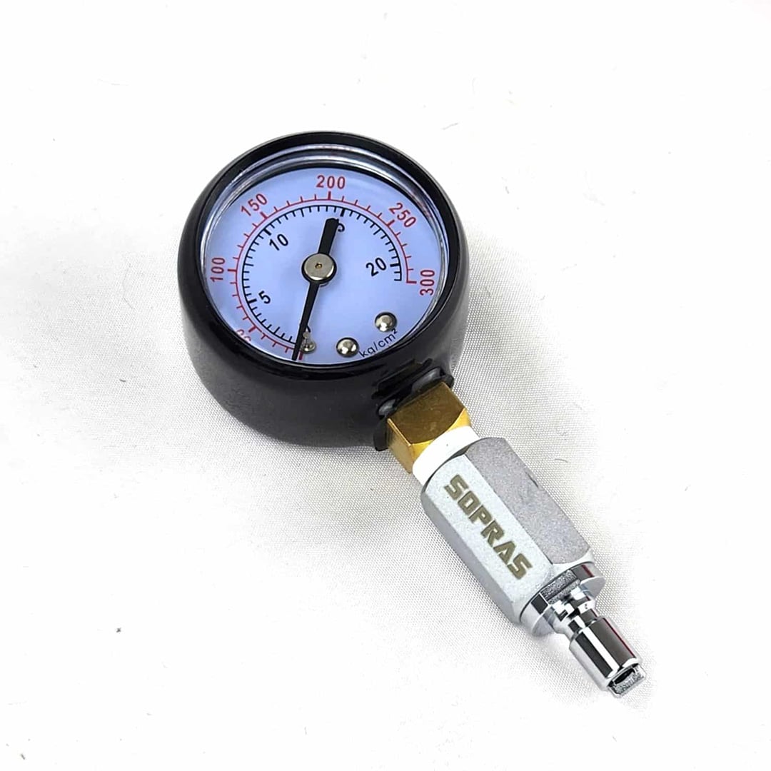 Kontrolní středotlaký manometr s připojením na inflátorovou hadici. Bez odpouštění.