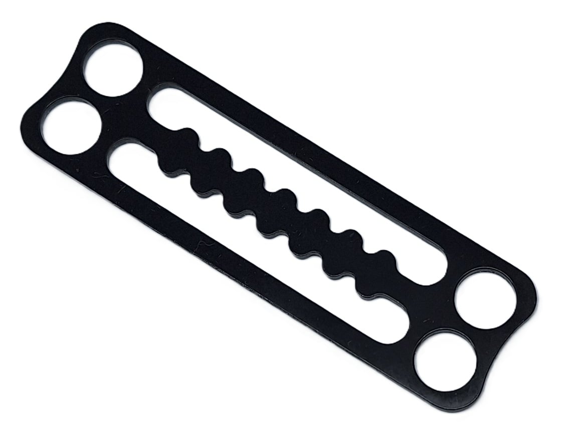 Zupatá stopka s otvory pro montáž 8 mm gumolana v černém provedení. Pro popruh o šíři 50 mm.